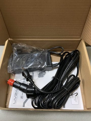 中には、家庭用100V電源用のアダプタとDC12V電源用(シガープラグ)のコードが入っていました。